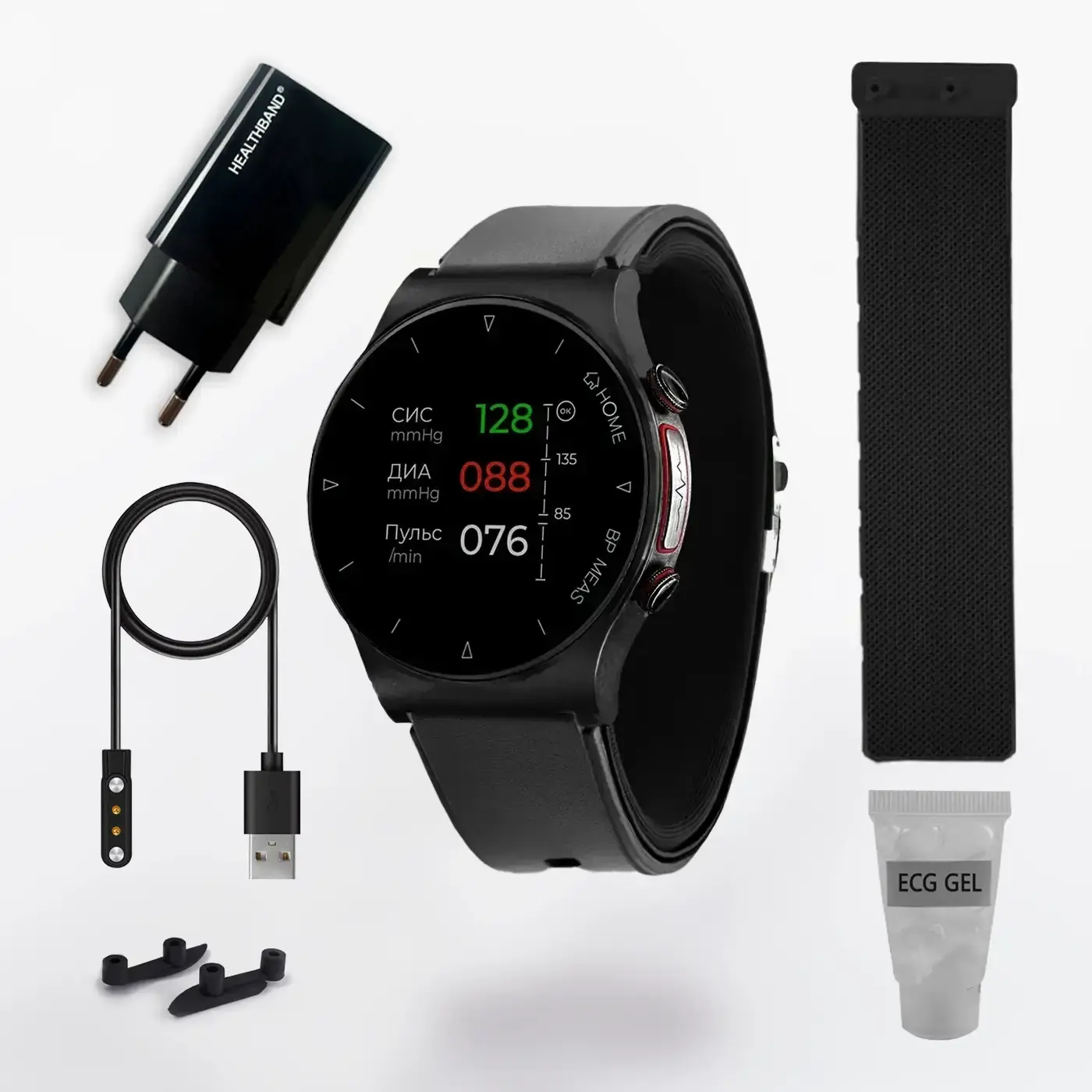 1 x Часы-тонометр с ЭКГ и точным измерением давления HEALTHBAND Pro №80ME, чёрный (чёрный)