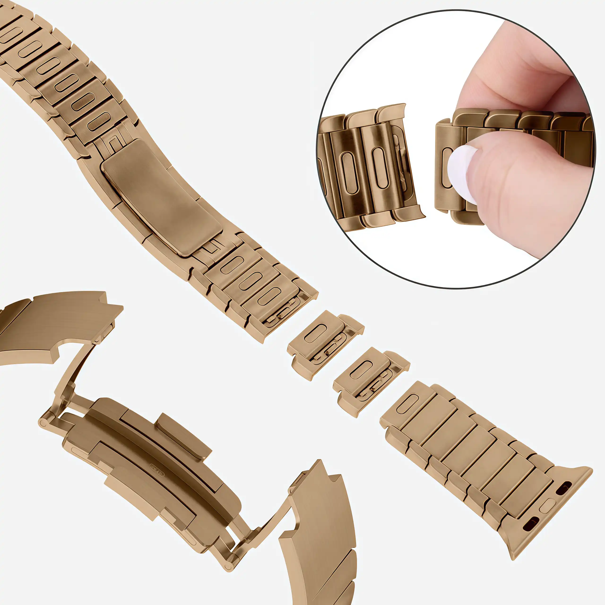Главное преимущество блочного браслета — удобная регулировка длины по системе Link.