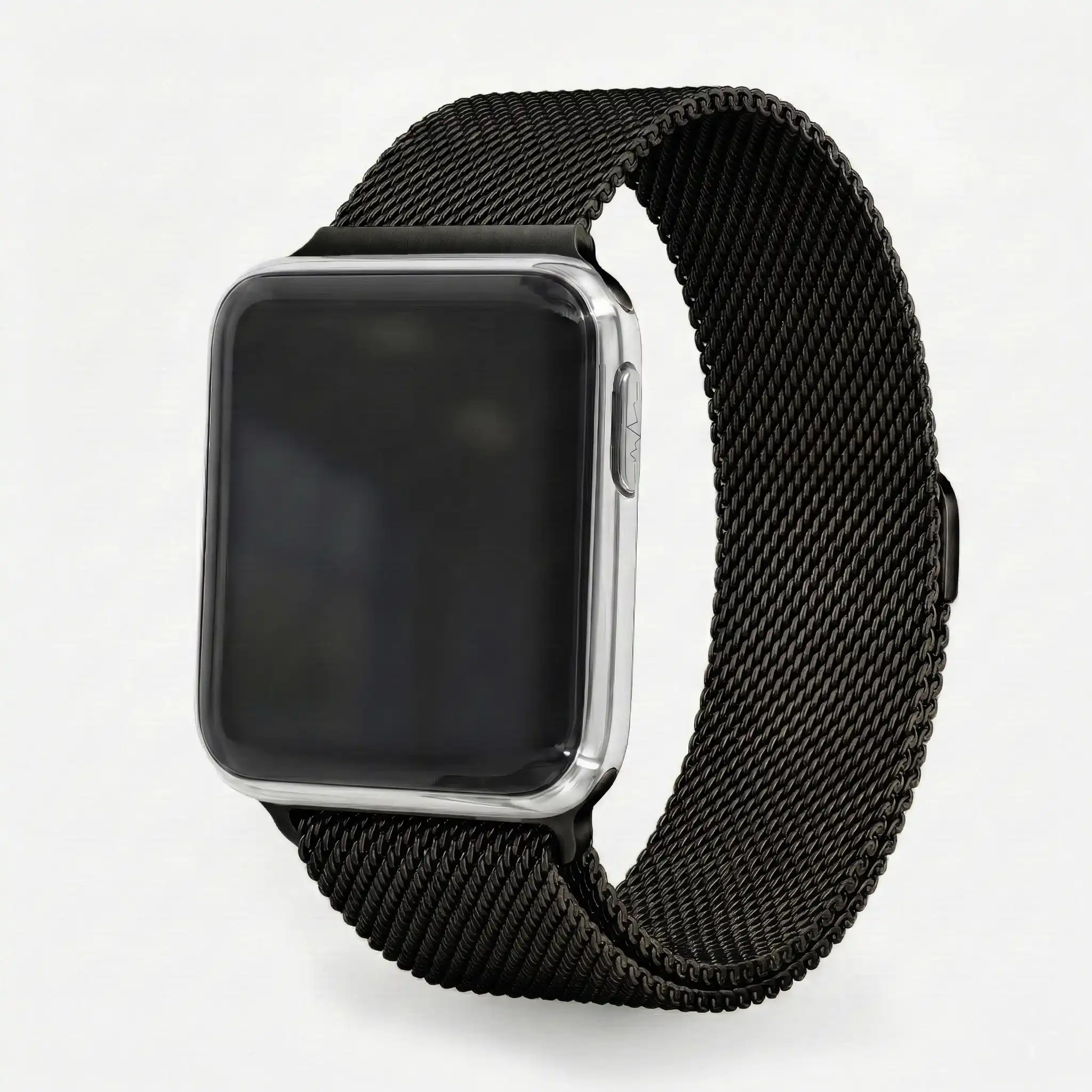 Миланское плетение представляет собой плотную сетчатую структуру из тонкой металлической проволоки. Такая конструкция делает ремешок гибким, прочным и комфортным при ежедневном ношении. Он мягко облегает запястье, не пережимает кожу и хорошо пропускает воздух.